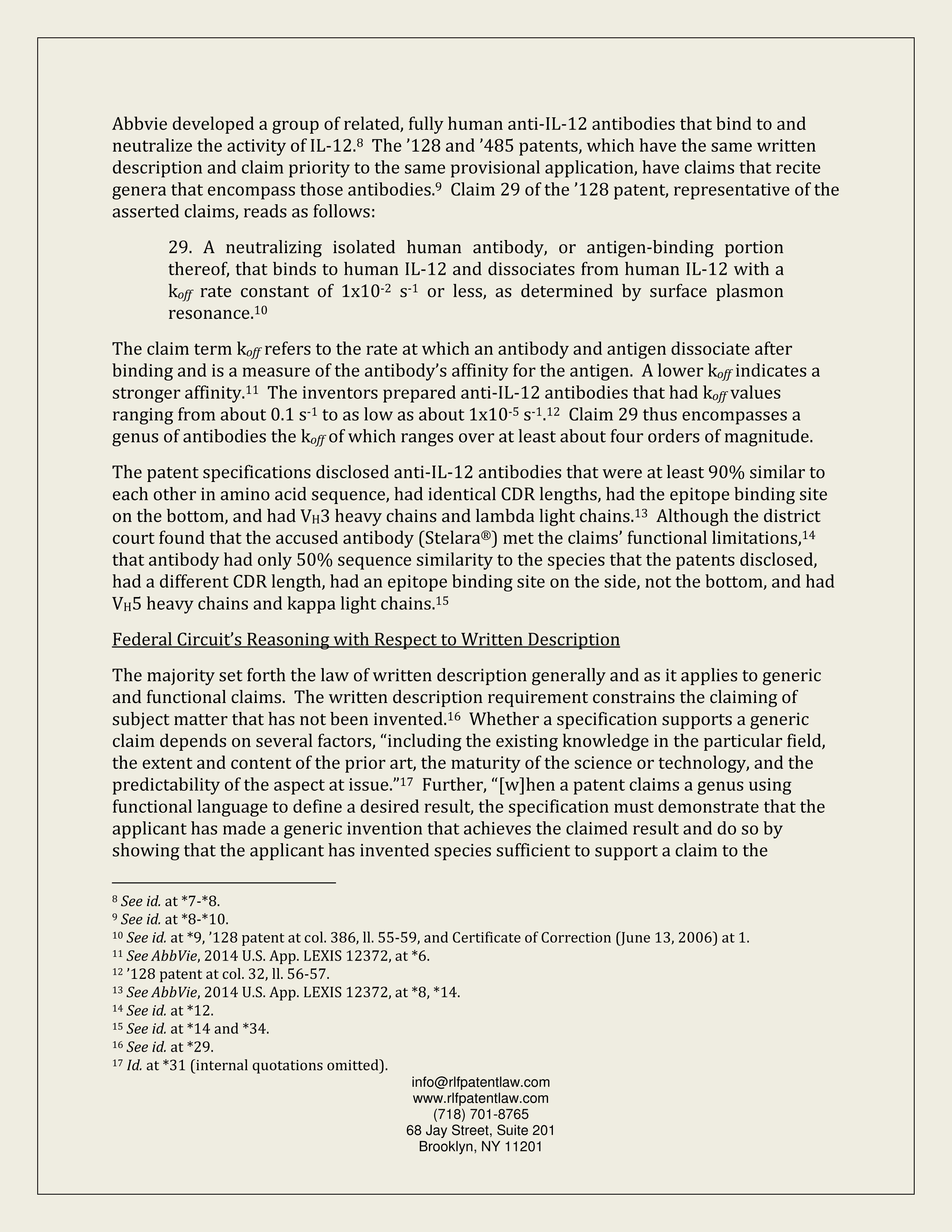 Sanofi (written description/functional antibody claiming)