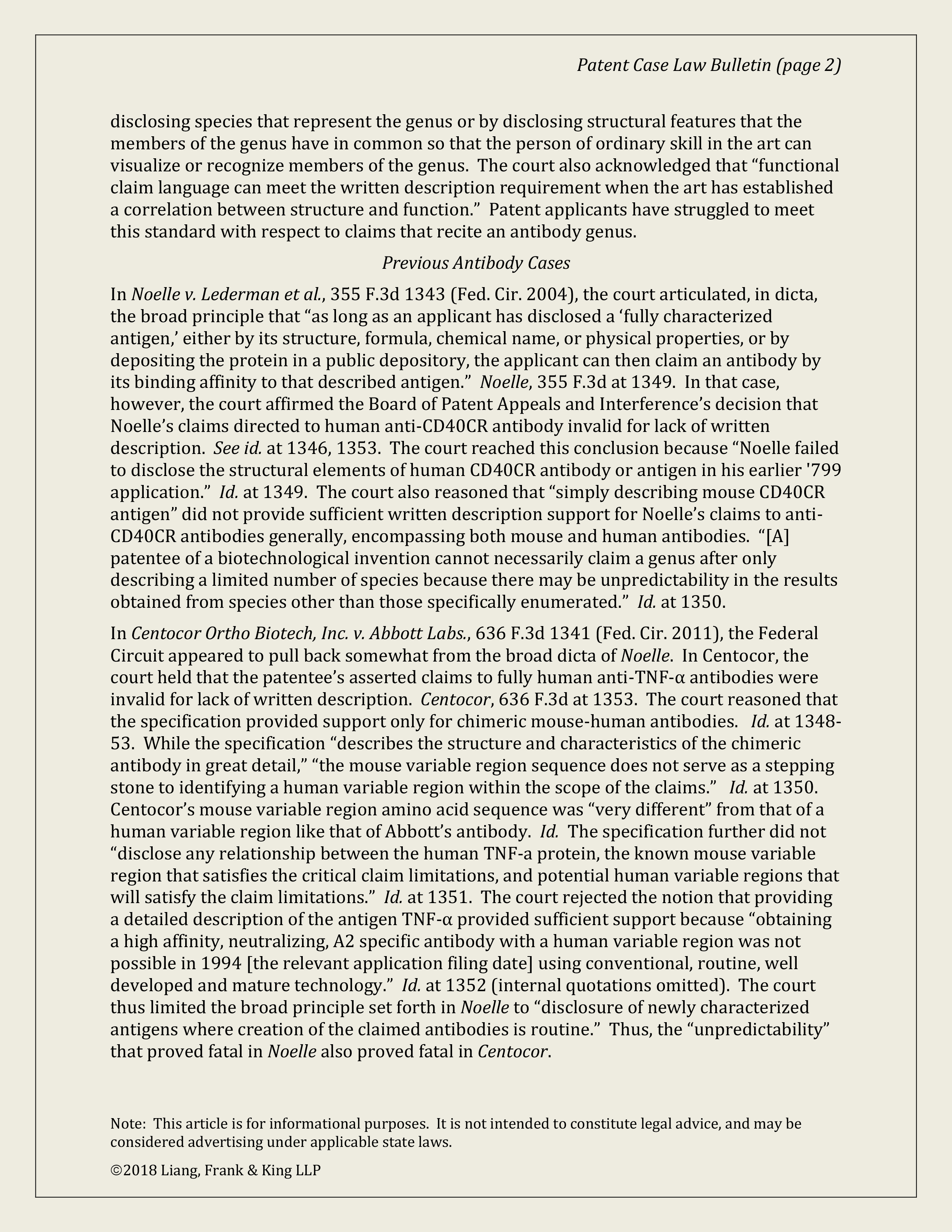 Janssen (biotech/written description/invalidity of claims to antibody genus)